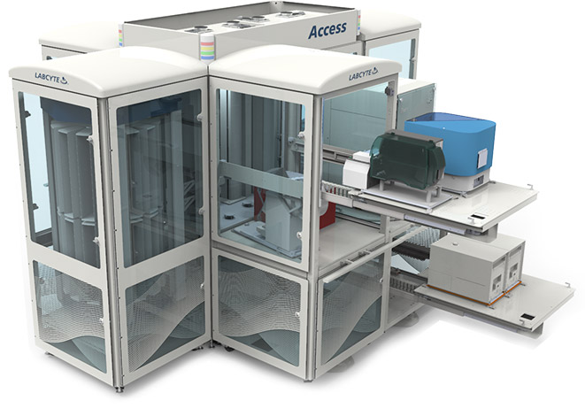 Access Single (SRS) and Dual Robot Systems (DRS) are compact, modular, high-throughput platforms, that are designed and optimized for the use of Echo Liquid Handlers. They are the only automation platforms compatible with the new Echo 650T and 655T Liquid Handlers, enabling all acoustic workflows including the automation of acoustic sample tubes. These systems combine industry-leading devices and software with ergonomic and environment management options to provide a complete, easy-to-use, automation solution.